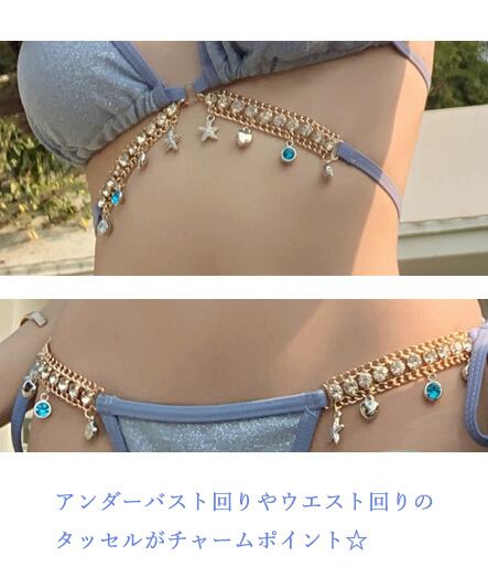 このビキニは、自信を持って着こなしたい方におすすめです。タッセルや三角ビキニのセクシーなデザインが、自分をさらに輝かせること間違いなし。ビーチやプールサイドで周囲の視線を釘付けにし、自分を最高に美しく見せてくれることでしょう。